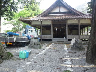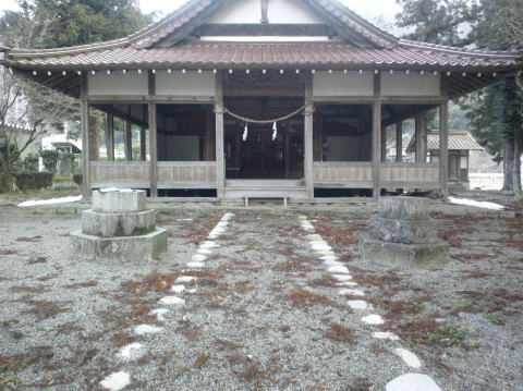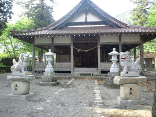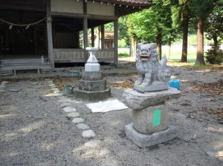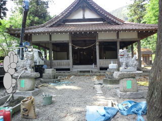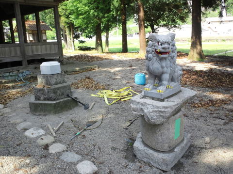 | 唐獅子の正面です 以前から自宅前にあった唐獅子(先代が仕入れたものです)を この度(有)吉村石材店で神社に寄進しました また灯篭は以前は真鍮製の物があったようですが戦争の金属供出で 台石だけが残っていたのを少し奥へ移動し 新たに石の灯篭を超々特価にて建立しました |