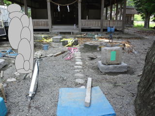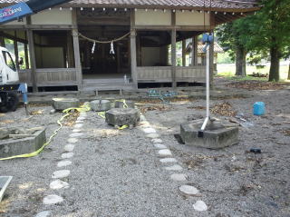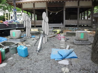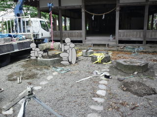 | 少し後ろにずらして据え付け開始 | 唐獅子の台の据え付け開始 | |