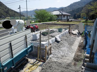 | 巻き石の据え付け開始 | つなぎ目にはアンカー | 工事中です |