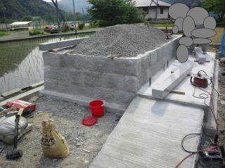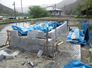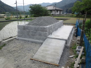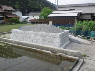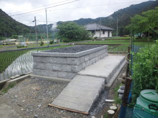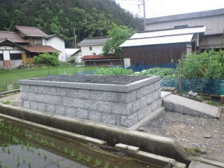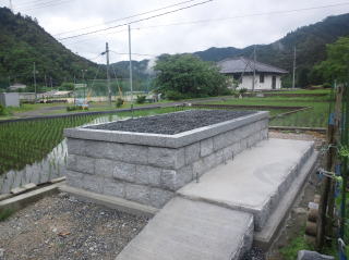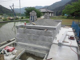 | 3段目まで積みあがりました | 墓地の石積みとスロープの完成 後方からと前横から | |