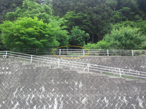 | これらのお墓を移転します 掃除や墨入れも | 今はこんな高い所にあります 黄色い丸の中 |