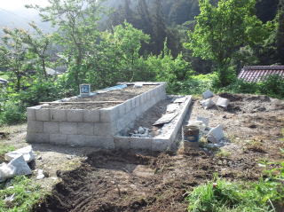 | 墓地の造成場所 | 道路の反対側の土地です | 石積み 現在2段目まで完成 |
