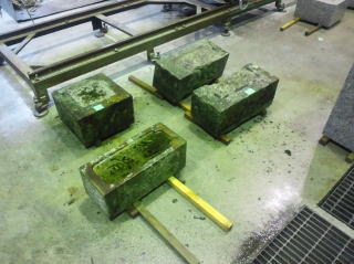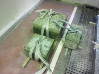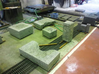 | 工場へ持ち帰った墓石 | 洗浄しています | |