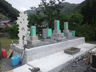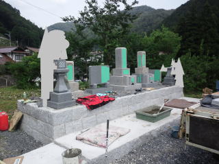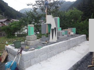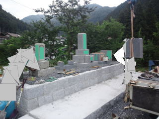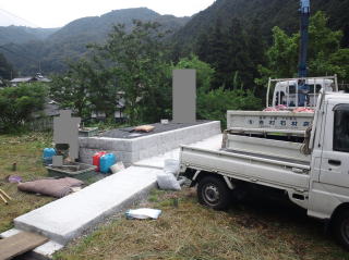 | 据え付け 開始 | トラックが墓地の前まで行くことができて 据え付けは 比較的 簡単 | ||