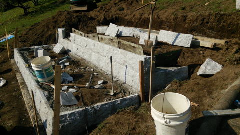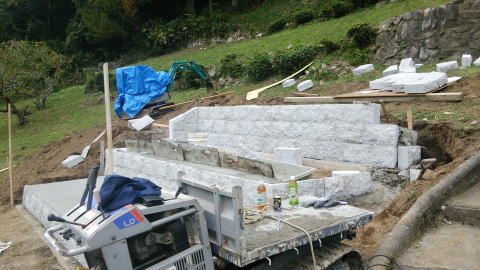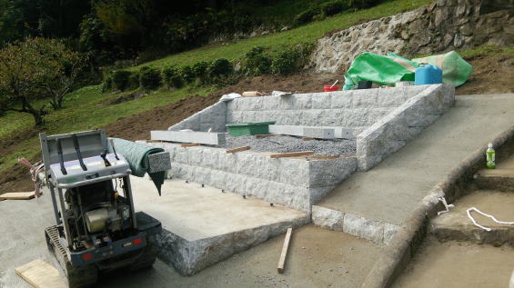 | 拝み場に モルタル 奥の3段目を積んでいます。 | |