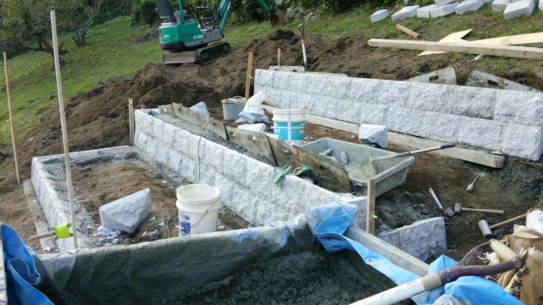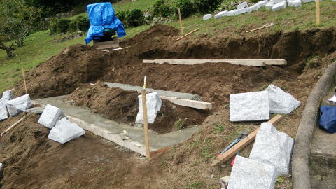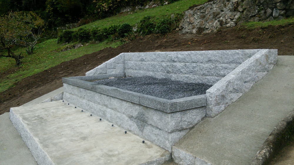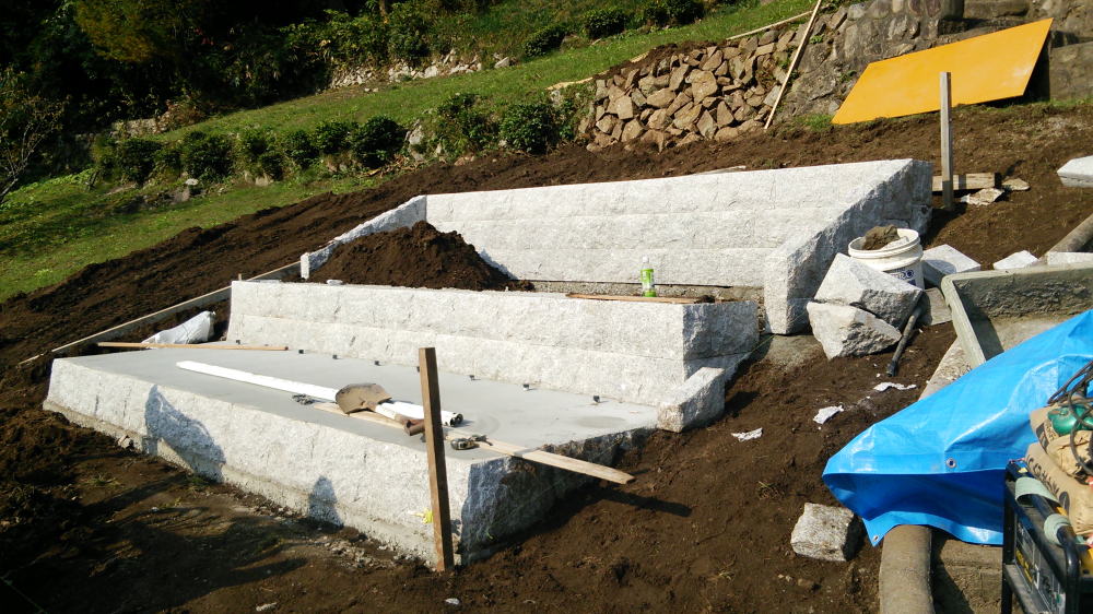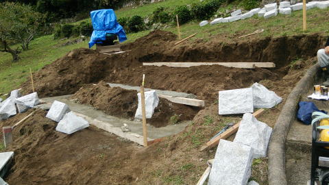 | 巻き石 据え付け 完了 この後 墓石の移転へ |