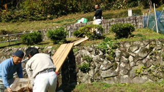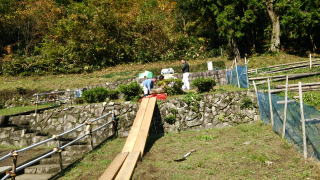 | 板を敷いて滑らせながら降ろして行きます。 | |||