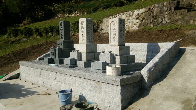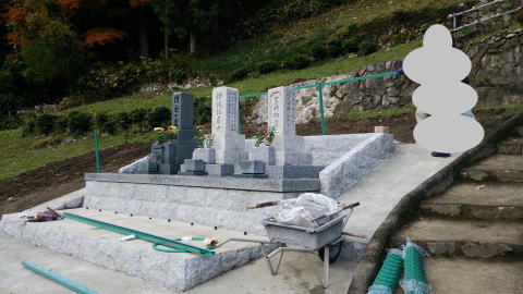 | 墓石をクリーニングして墨入れ 据え付け ほぼ完了 |