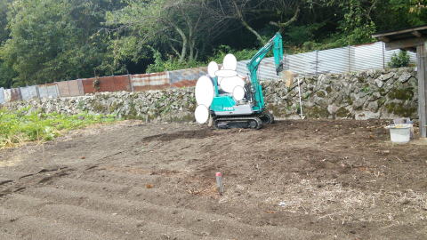 | 小さい ユンボ | 柿の木の根を掘って除去 |