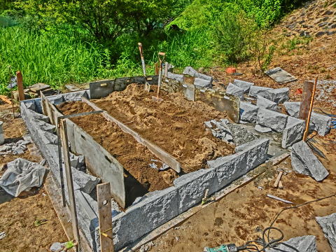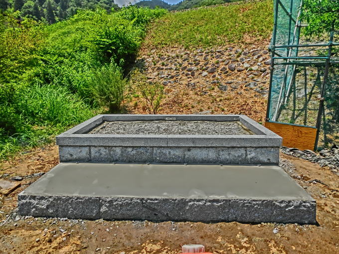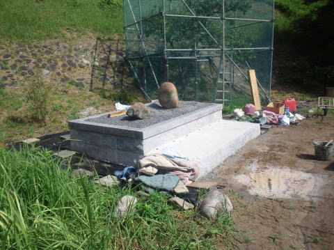 | 中には粒度調整砕石 | 拝み場にモルタルを打ちました |