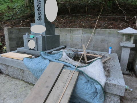 墓石の降ろし 移転開始