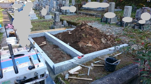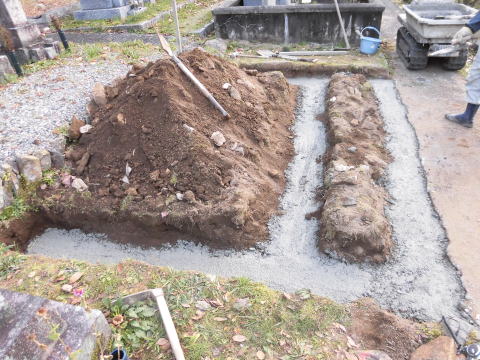 墓石の処分 墓石の新設 巻き石工事 2017年11月 工事中 ![]()