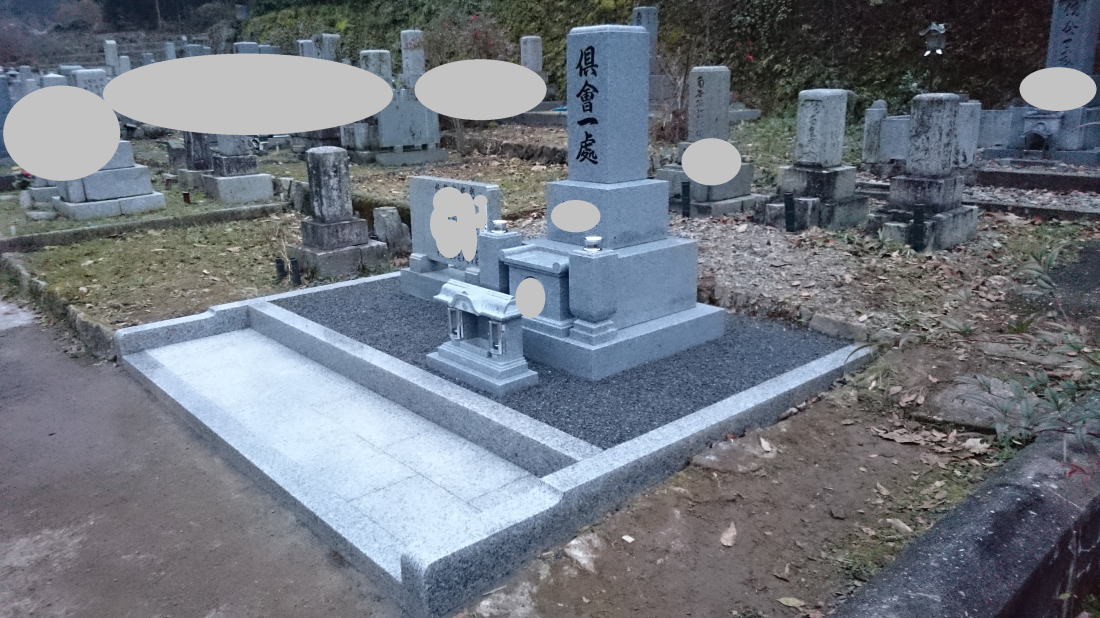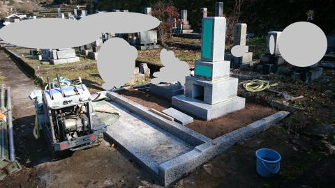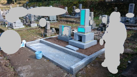 | お墓の前には香炉を据え付けて工事完了 |