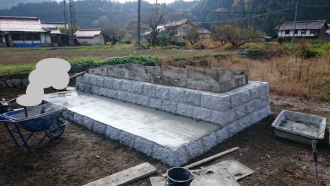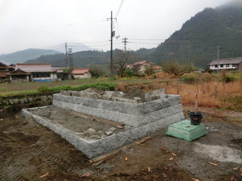 | 割り石を積んで墓地造成中 | |