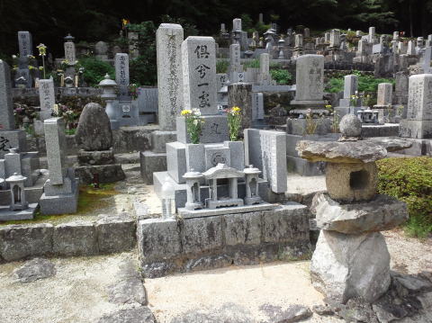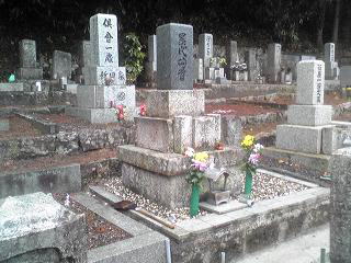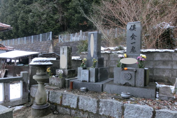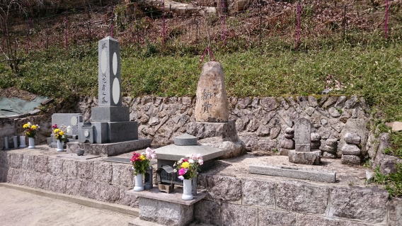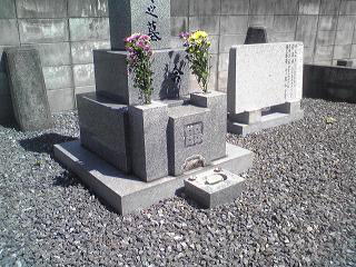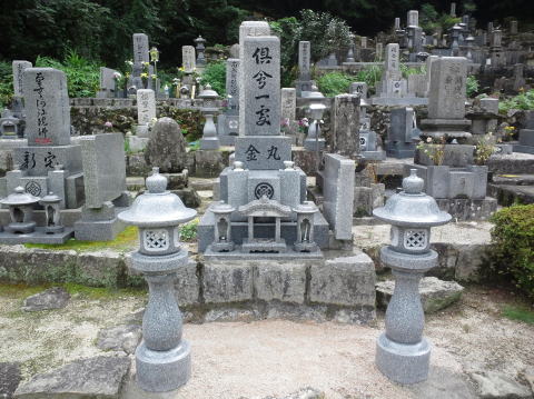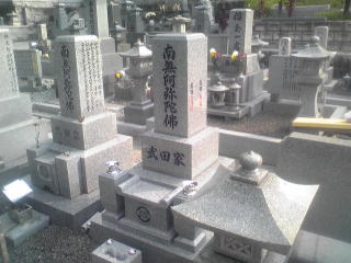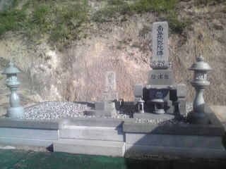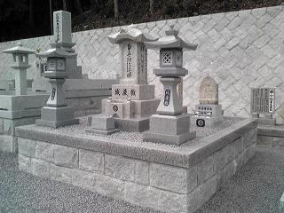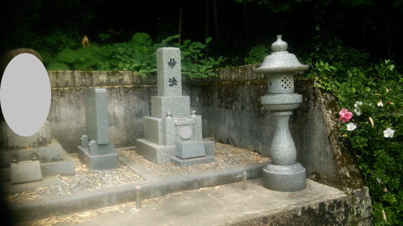 大島石 9寸 と 墓誌 両側には3尺5寸丸型の灯篭 |