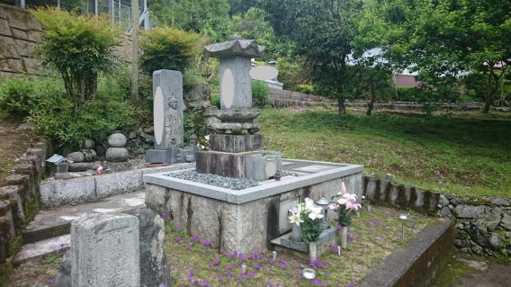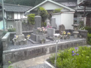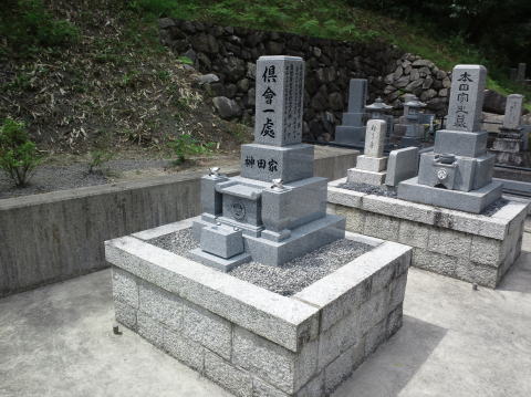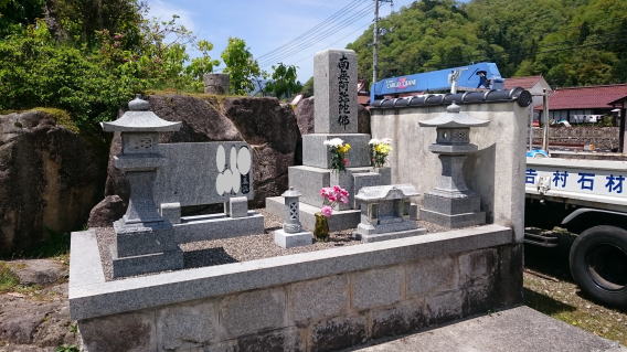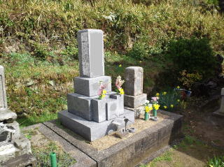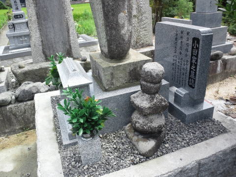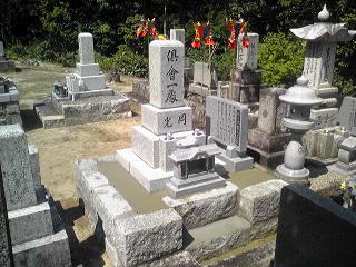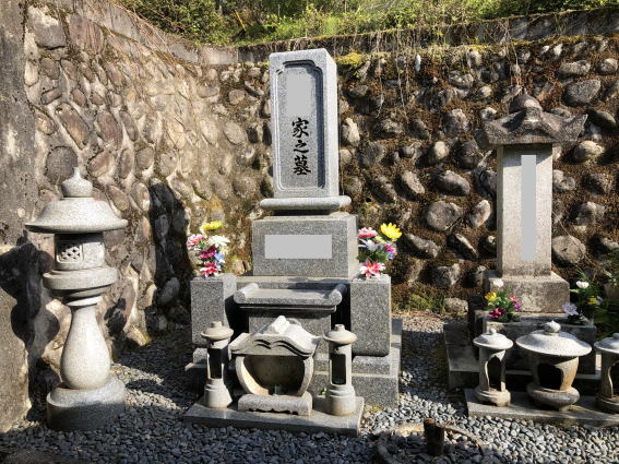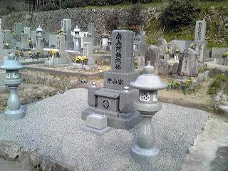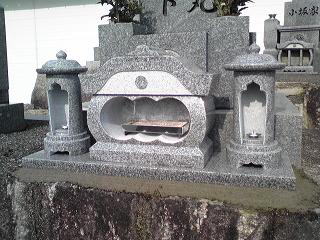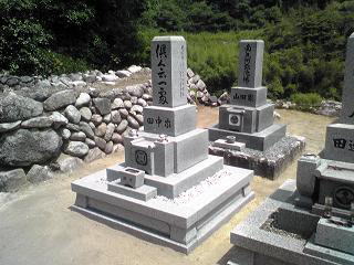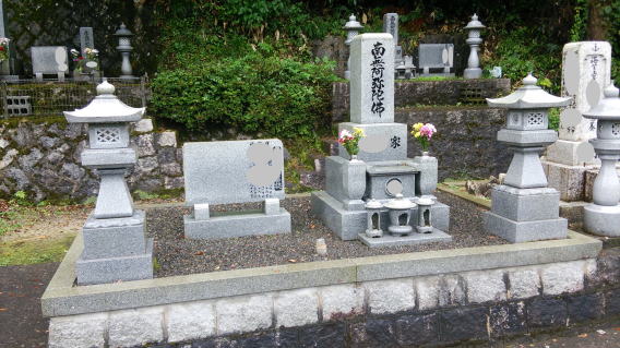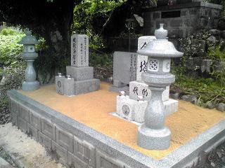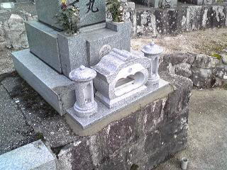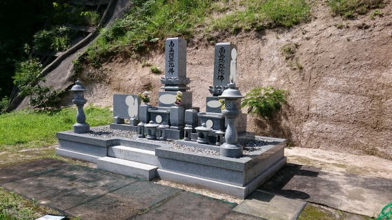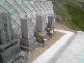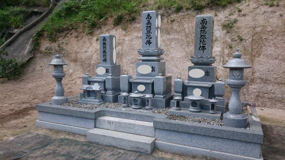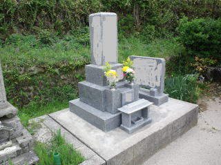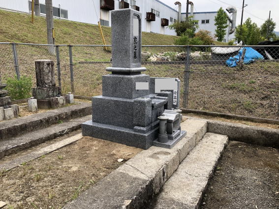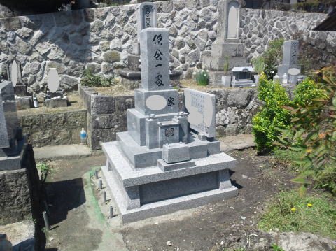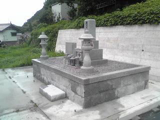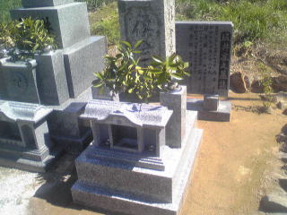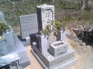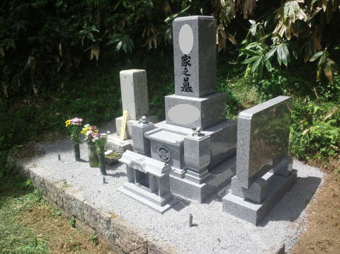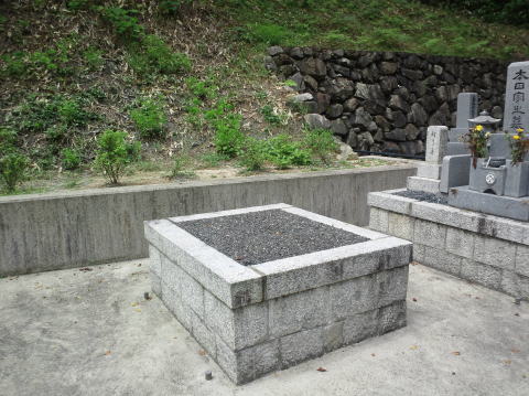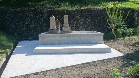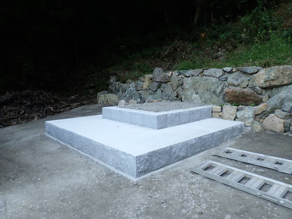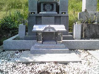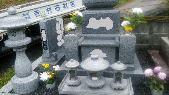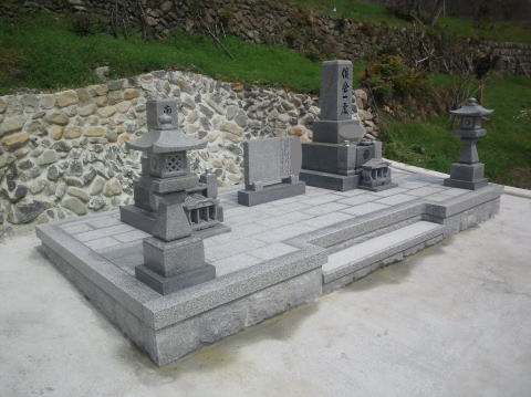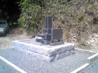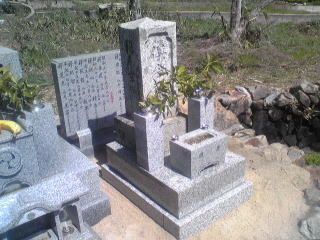 7寸大島石(伊予石)3段のお墓を増設しました 手前の線香たては 吉村石材店のオリジナルの形 お墓にはサービスで付けています | |