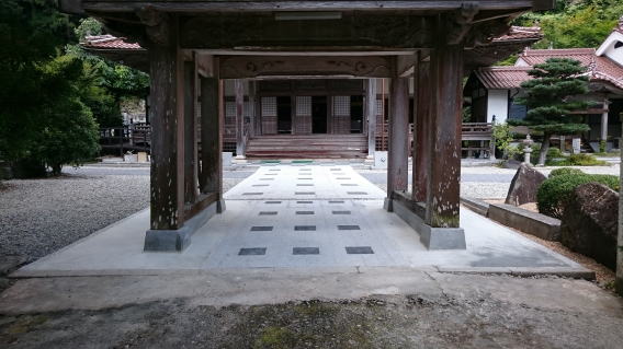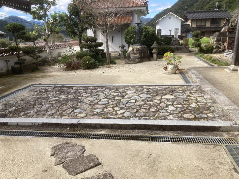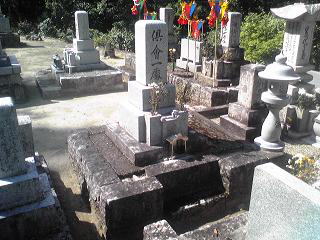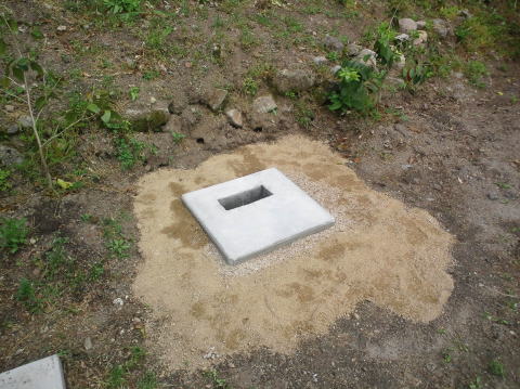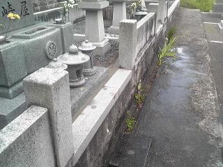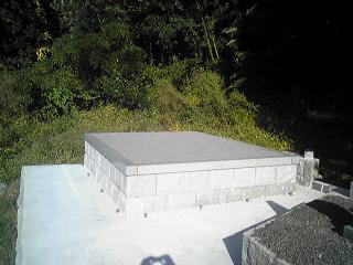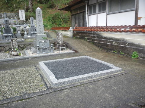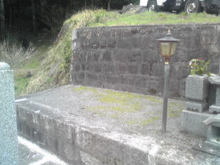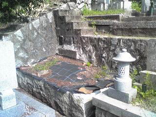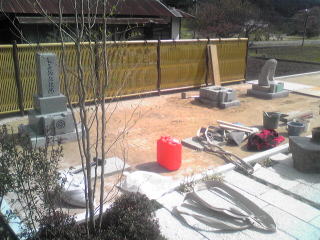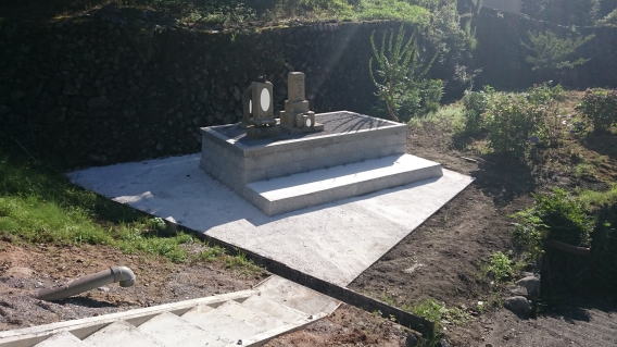 墓地の目地や 拝場の手入れをします 拝むところには 板石<1200×600)を据え付けました |