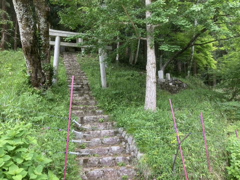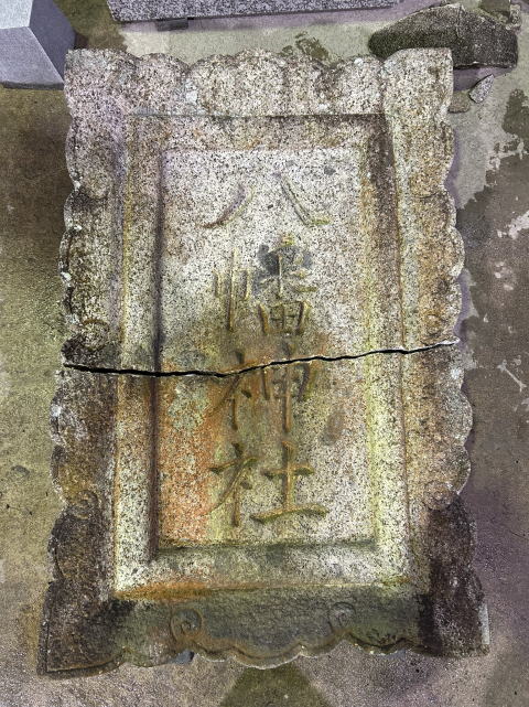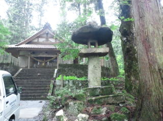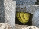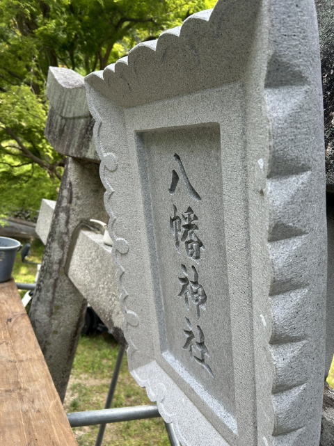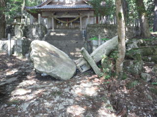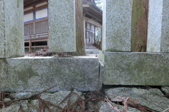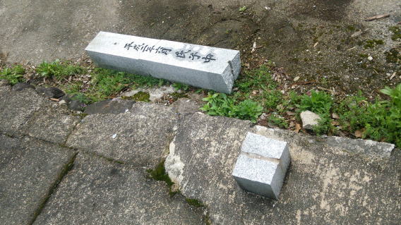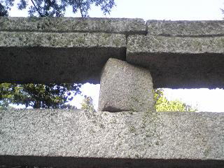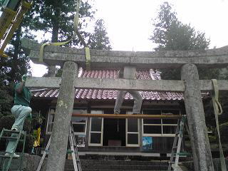 鳥居の束石と笠石が地震のためかずれていました笠石等をいったん取り外し 据付直しをしました |