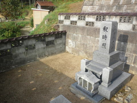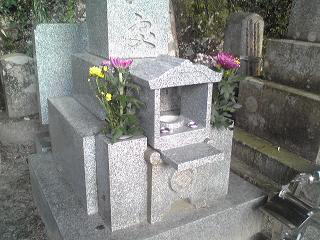 墓石 (9寸 中国材)を新設しました) お墓の前には山門型の香炉 |