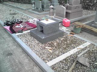 墓地に長石の据え付け 砂利(砕石)を敷きました 古いお墓と墓誌の移動 |