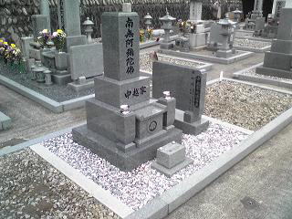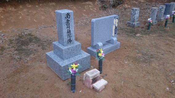 8寸の中国材の墓石と法名石 右側のお墓は 古いお墓の移転 |