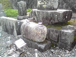巻き石 9寸墓石 墓誌 丸型灯篭 そして笠付香炉 | |