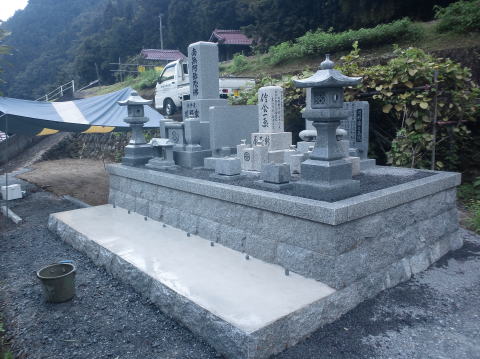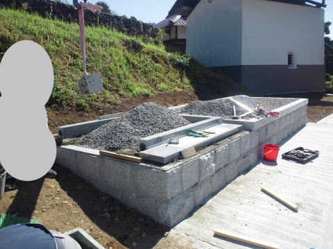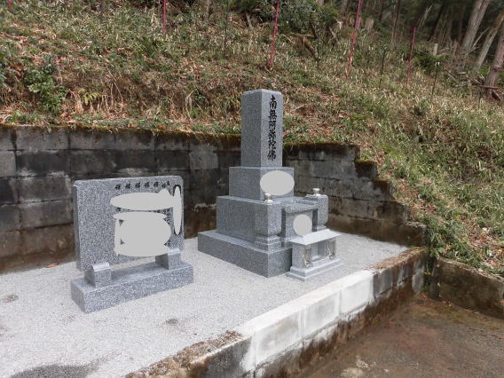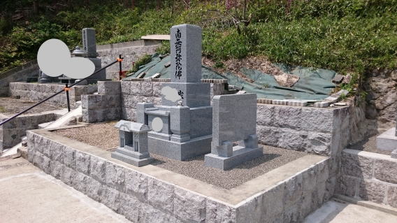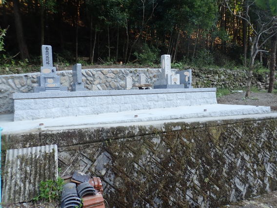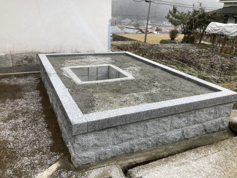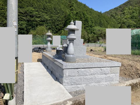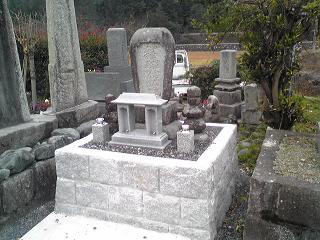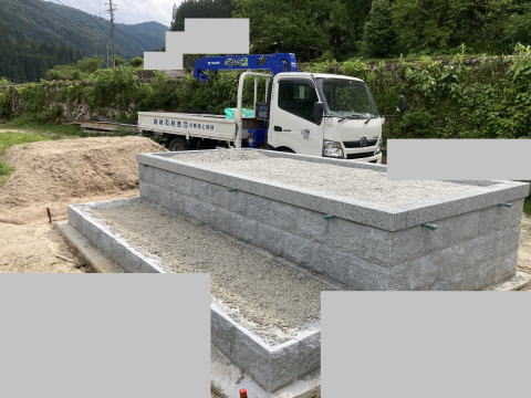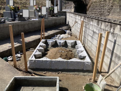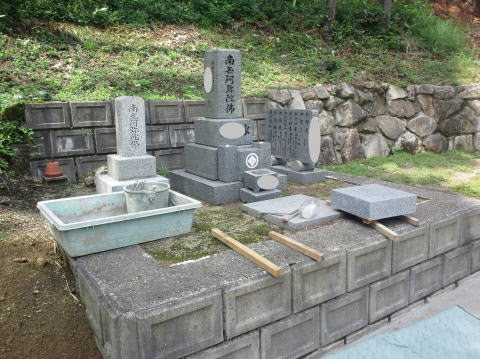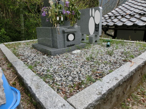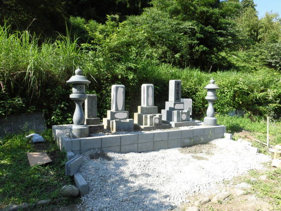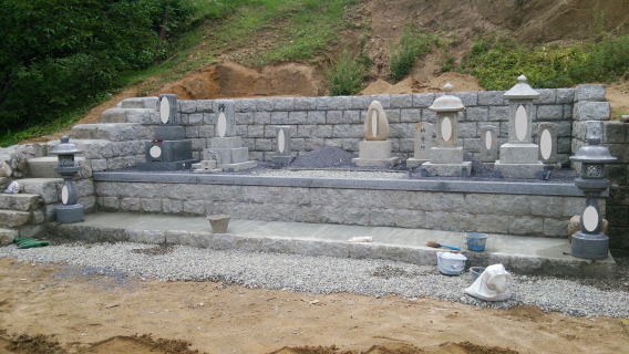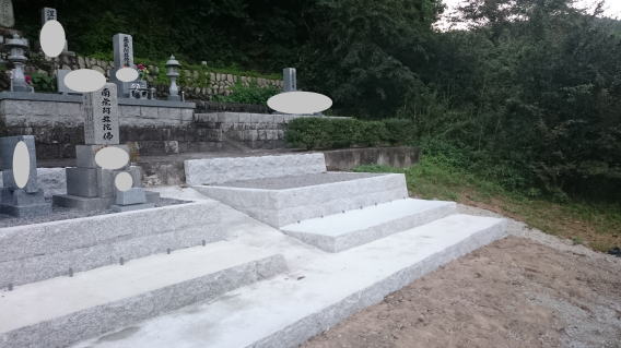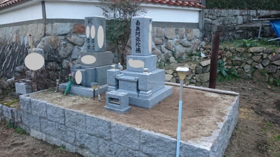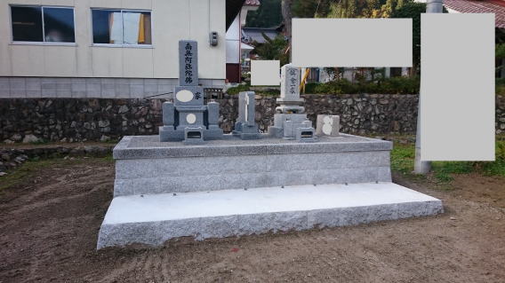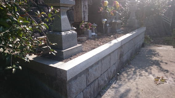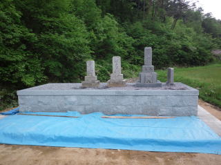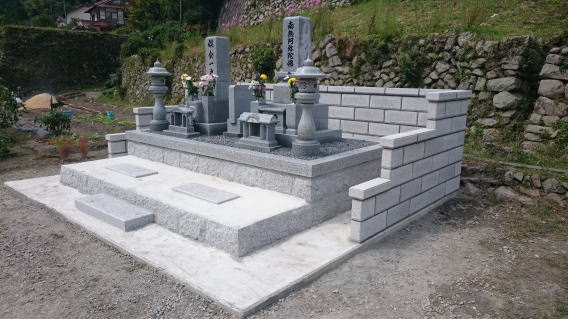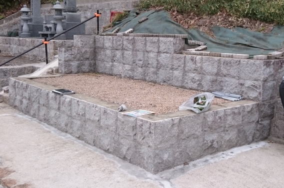 墓石を3基 移転 墓地も右側へ増設 前の墓地がブロックで施工してあったため増設もブロックで施工しました お墓には墨入れもしました |