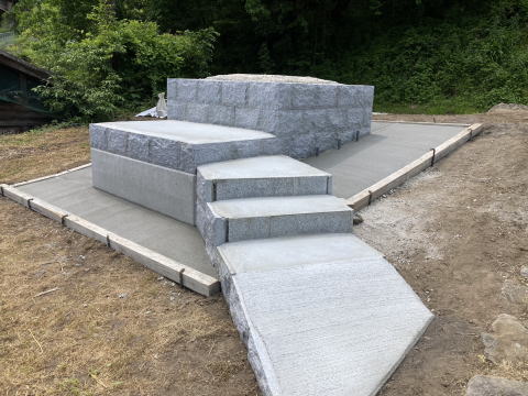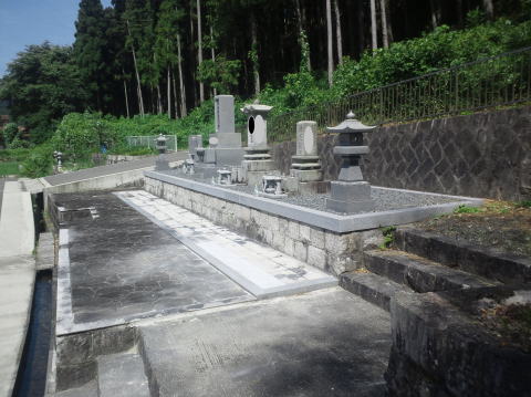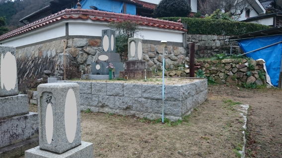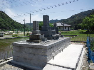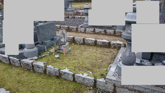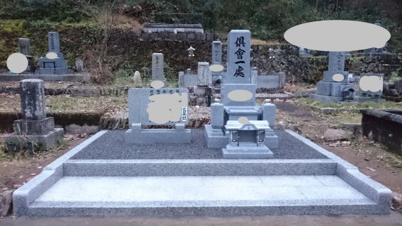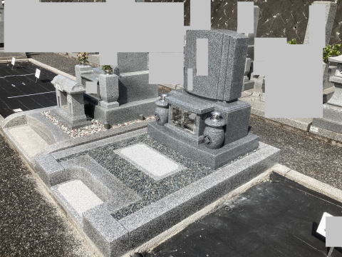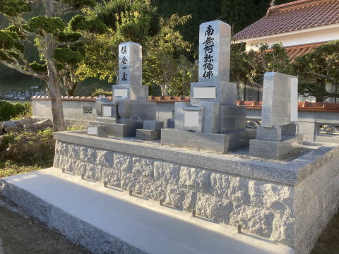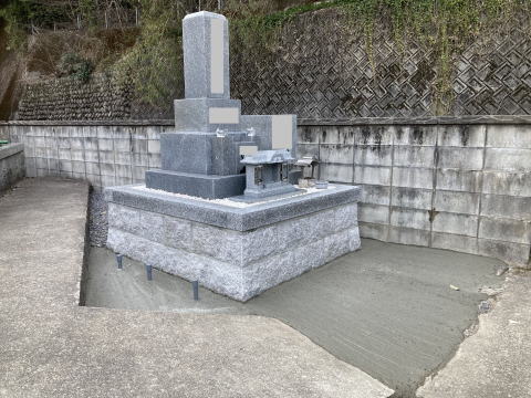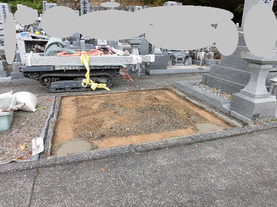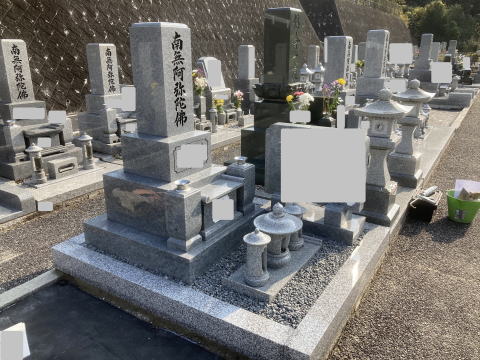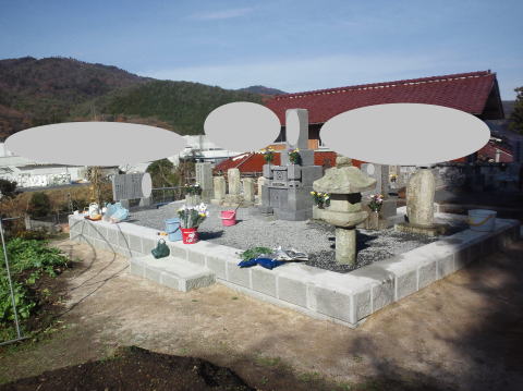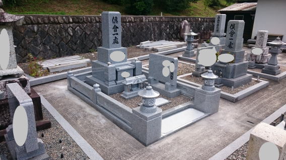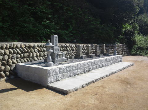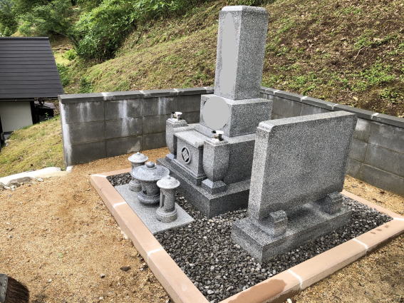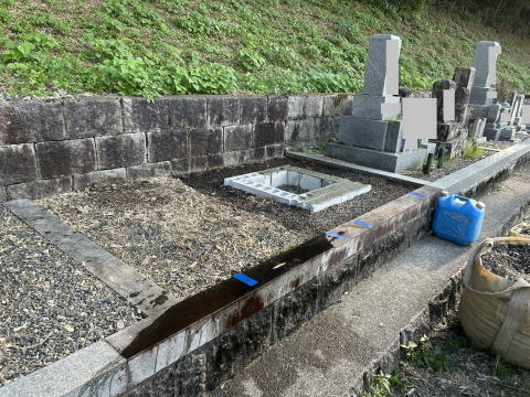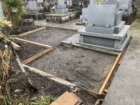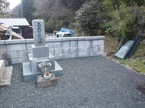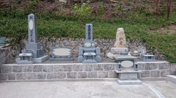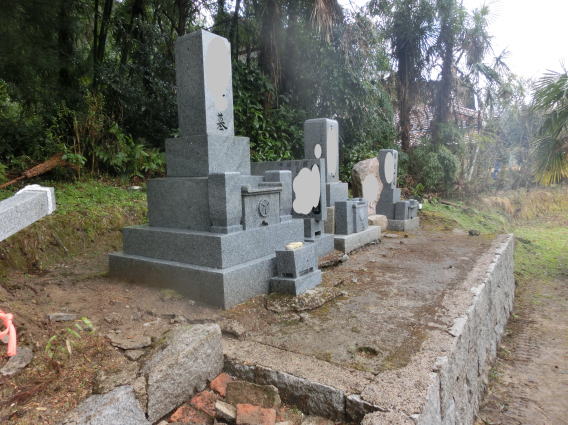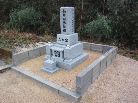 墓石を3基 移転 墓地も右側へ増設 前の墓地がブロックで施工してあったため増設もブロックで施工しました お墓には墨入れもしました |
