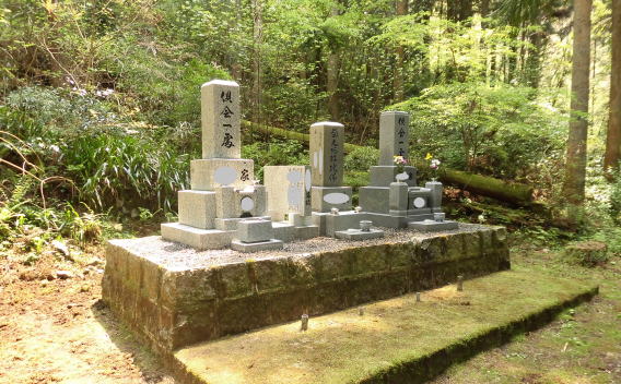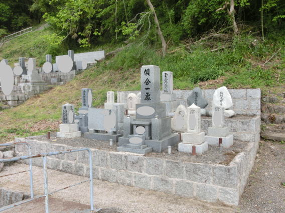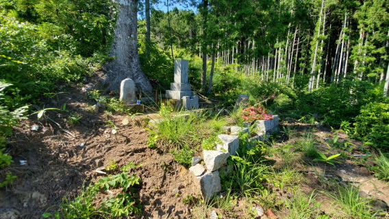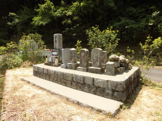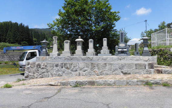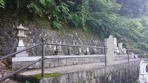 墓地の新設、墓石の新設、移転、引取処分 移転元(旧墓地)が山の中の難所で道づくりから始めました。 小型の運搬車で700m入ります。 |