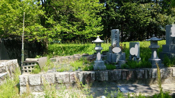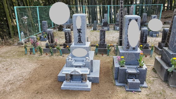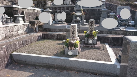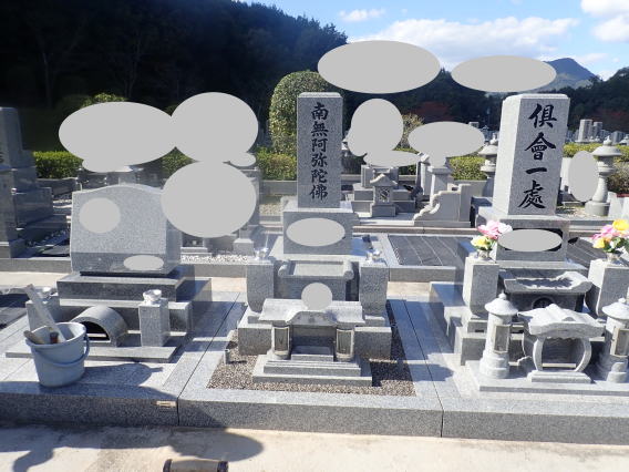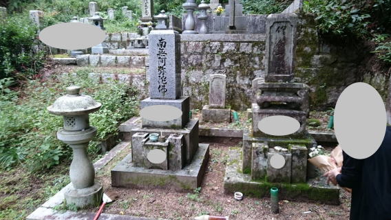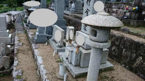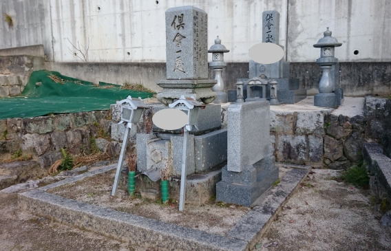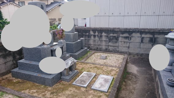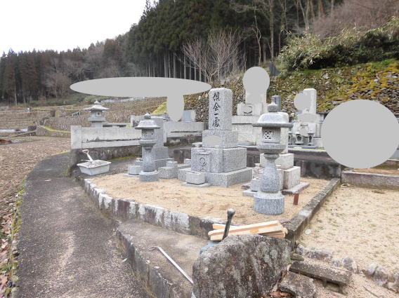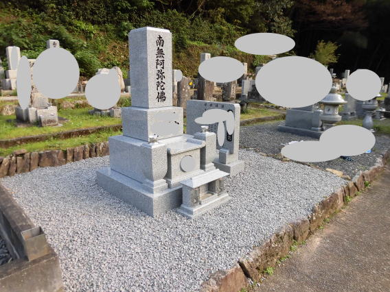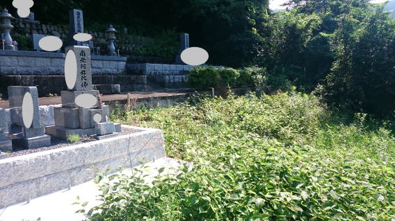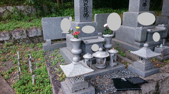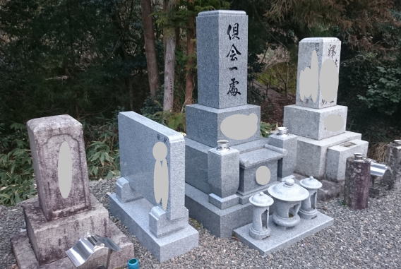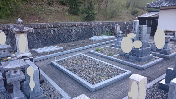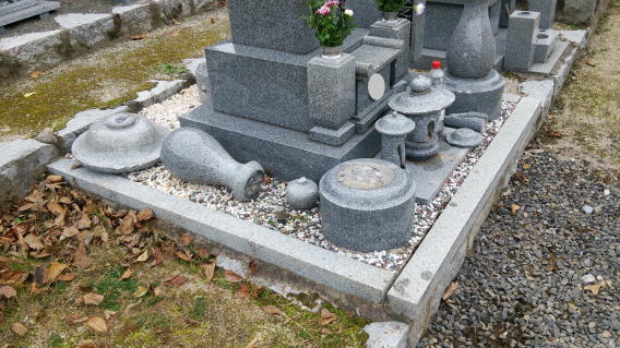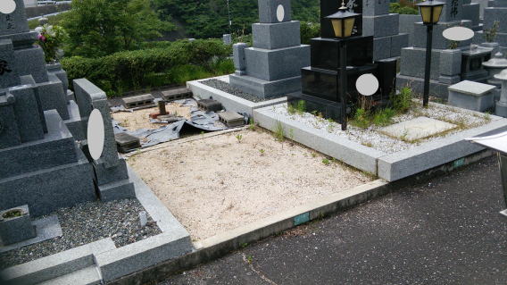 墓石を大小合せて4基 墓誌 墓前灯篭を処分しました 永代安置場所へ持っていきました |