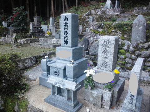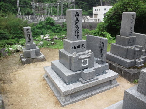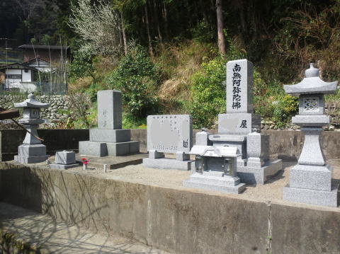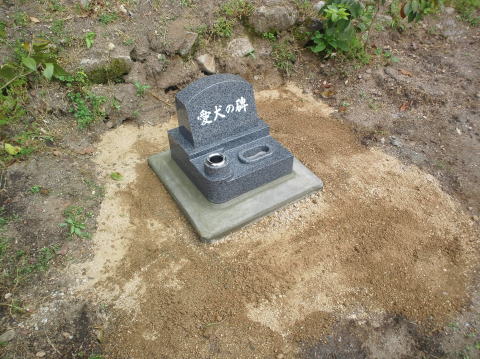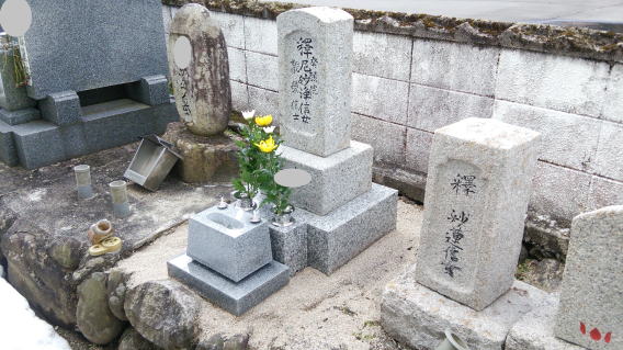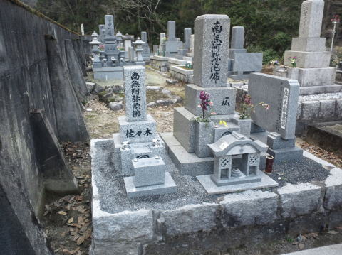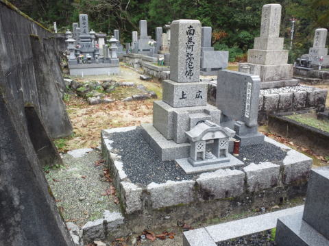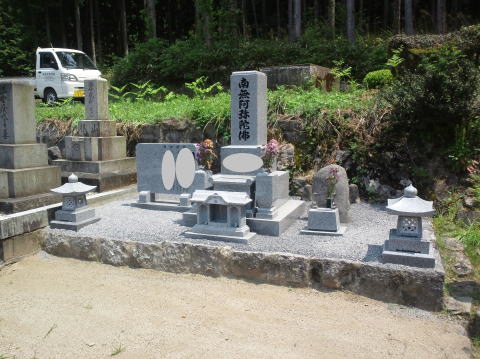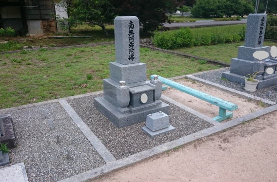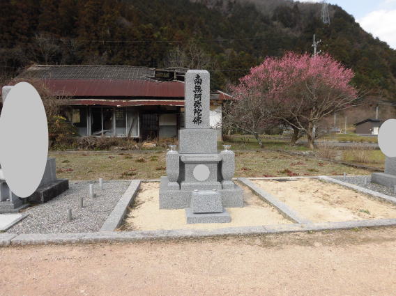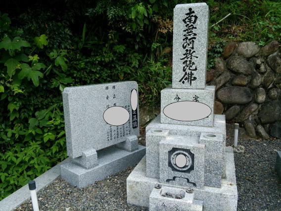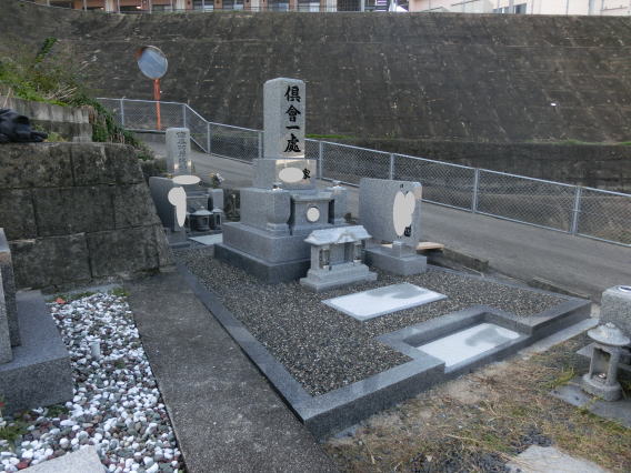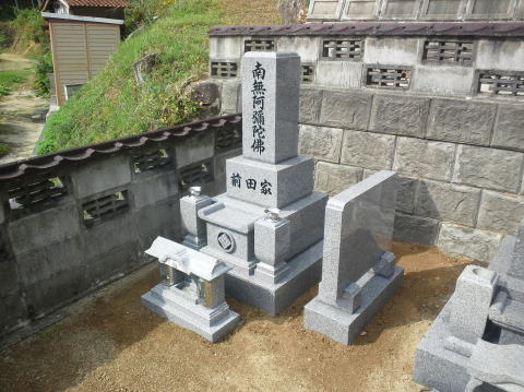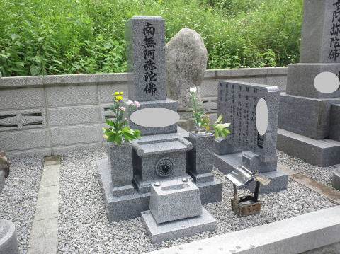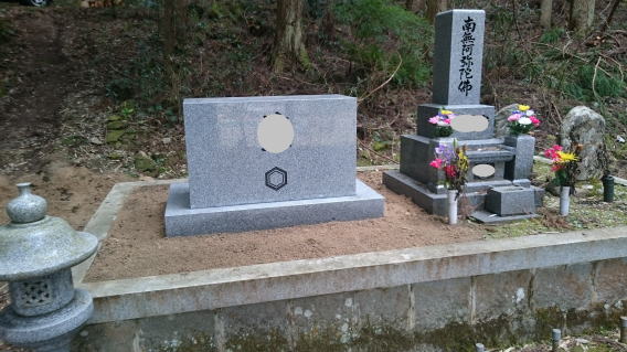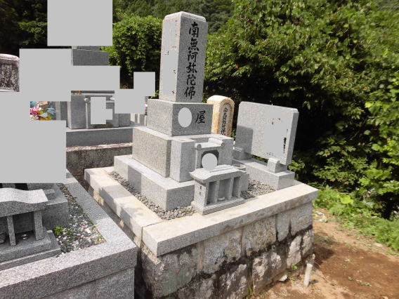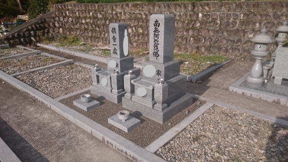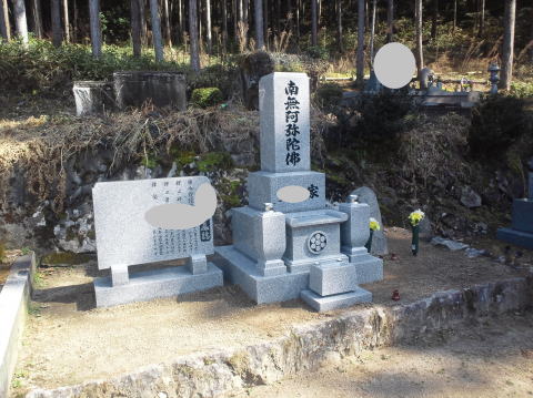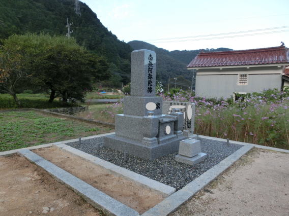 墓石を移転しました 広島市内に居住されており 年齢から田舎の墓地にお参りする事が困難になり 寺町の寺墓地に移転しました 寺墓地は非常に狭く(900×900)の為 法名石は移転がかなわず 仏石に文字彫りをして据え付けました |