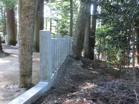 玉垣の巻き石が 前後に 大きくずれていました きれいに据付け直しました |
