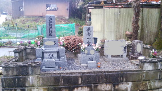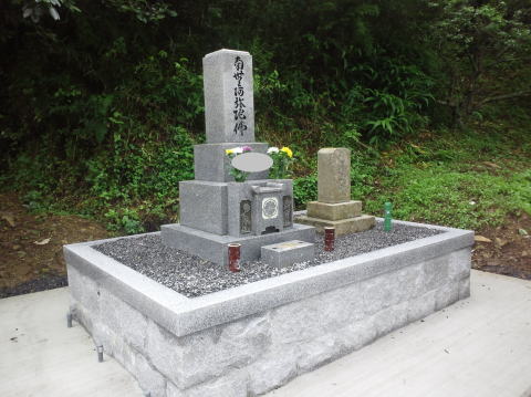 現在の墓石と法名石を少し右へ移動 真中に8寸(中国材)の墓石を新設 |