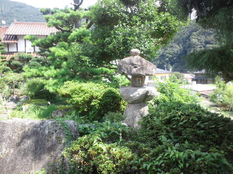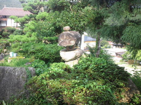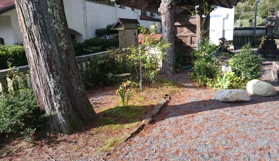 巻き石(縁石)を施工しました 自然石の灯篭は撤去 巻き石の中には砂利を敷きました |