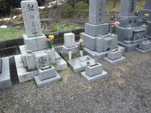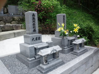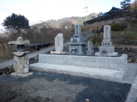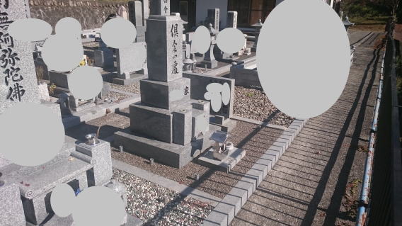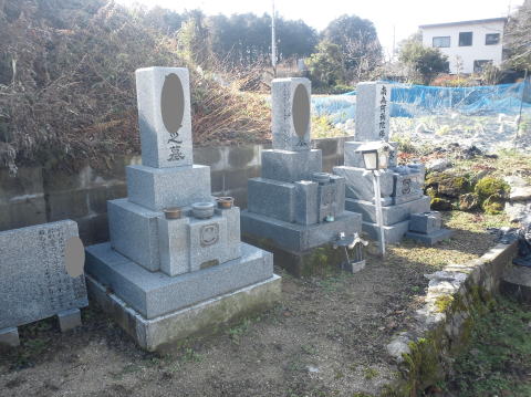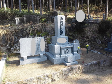 墓石を3基移転しました前側に2基 後ろ側に1基を移転 追加文字彫りと 墓前灯篭(丸型)の新設 | |
