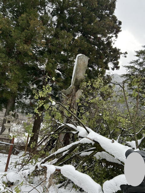 鳥居の修復依頼です。 大雪の影響で鳥居のそばにあった大木が倒れ直撃したようです。 1番上の笠石はくの字に曲がり 「〇〇神社」と刻んである額束と言われる石は上も下も1点でのみ接地しているだけで奇跡的に倒れていないという状態でした。いつ笠石が倒れてもおかしくないのでとても正面にはいけませんでした。 この大木を処理するのも気を使いそうです。。 さて、どうすれば安全且つ速やかに作業ができるか頭をフル回転させてみようと思います。 |