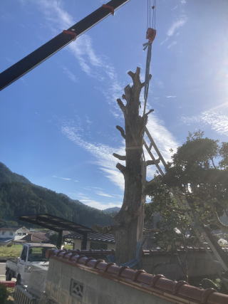 うちの職長には感心させられます。 墓地完成後、家の大きな庭木を切ってくれとのご依頼。 上部分から2~3mずつ切るのかと思いきやお見事、一発でした。 私はクレーン操作だけでしたが、すぐ近くには塀もあったので心臓バクバクでした。 こういう自分にない技術を見れるのは貴重ですね。目に焼き付けました。 |