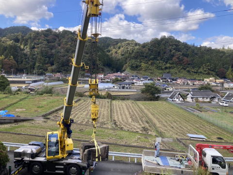 墓地の造成、移転、クリーニング新しいお墓等々 移転元からの移動は機械が入らず人力(人員5人)で頑張りました。移転先ではカニクレーンが大活躍しました。 |