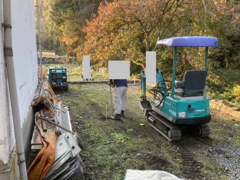 寺院様合同墓の土台造成工事です。雪も降ったりする中凍えながらの作業です。 |