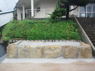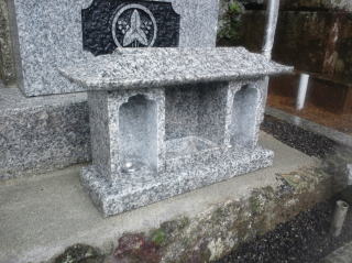 花立てを作り変えました 家紋が間違っていたのと(当社のお墓ではありません) 納骨のしやすさから供物台を小さくしました 材質は伊予石(大島石)です |