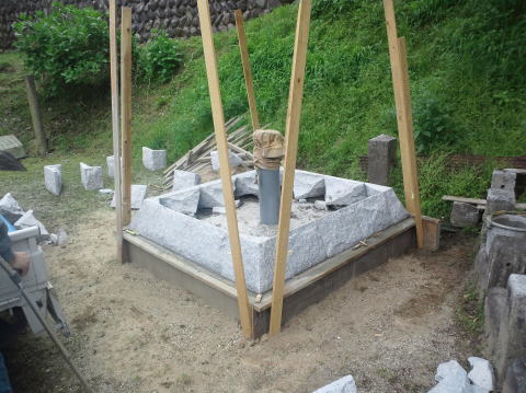 巻き石の施工と 8寸 中国材の墓石の新設 |