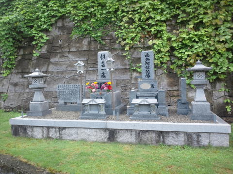 合同墓の完成です。 沓脱石(お参りするところの台)と 板石(全面に貼った400×800)は寄付させていただきました。 |